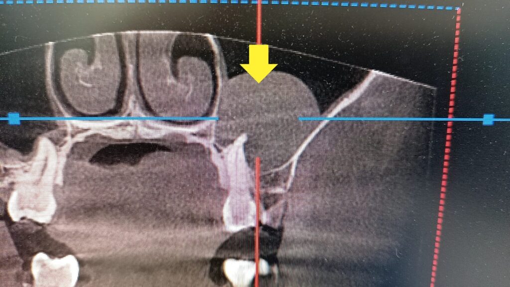 ななんと、上顎洞内に嚢胞とも思われる炎症の跡がありました。