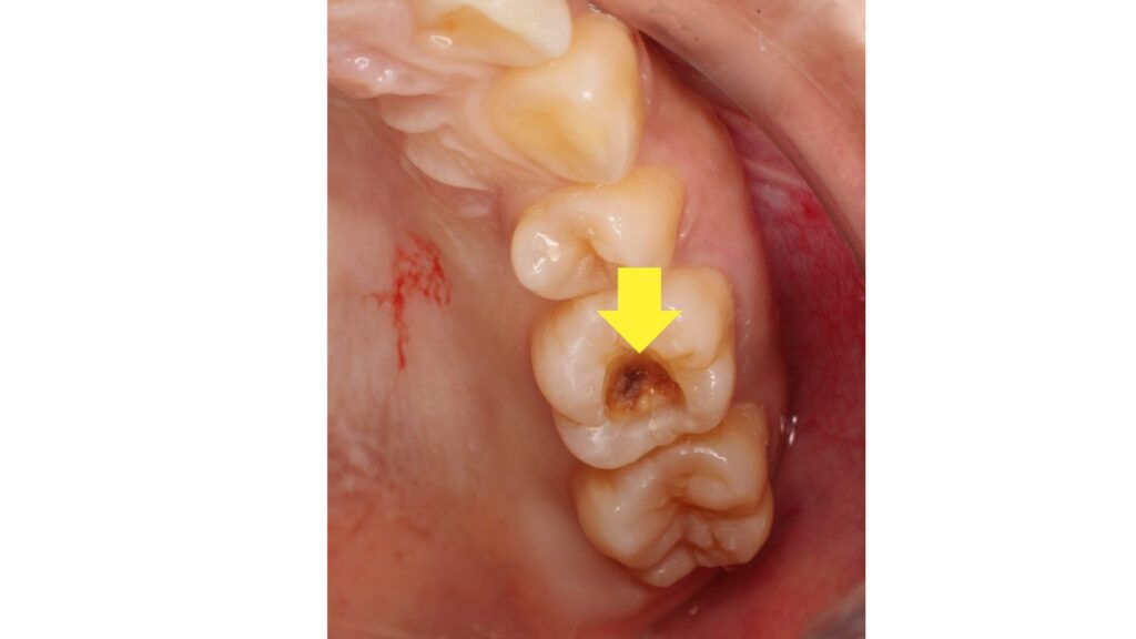 すると内部にはレントゲンにも映らないように慢性の虫歯が残っていました。